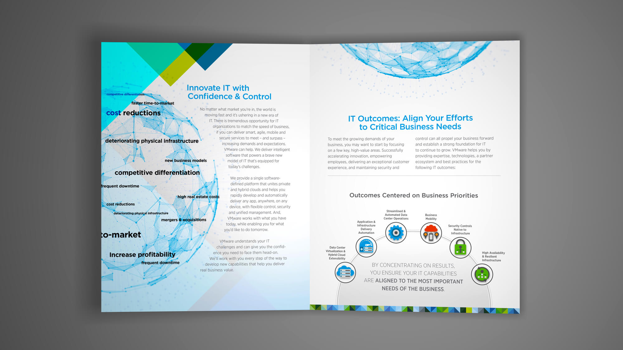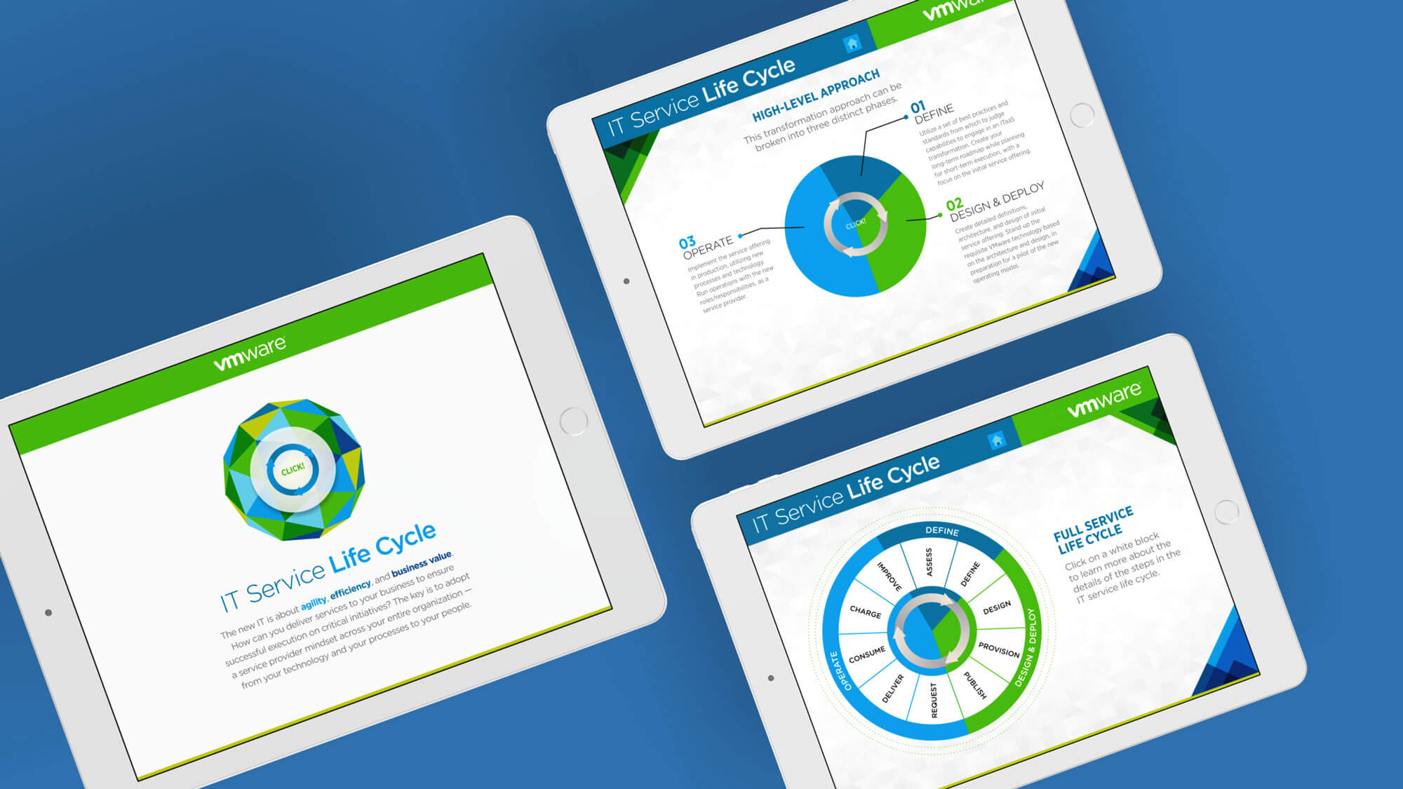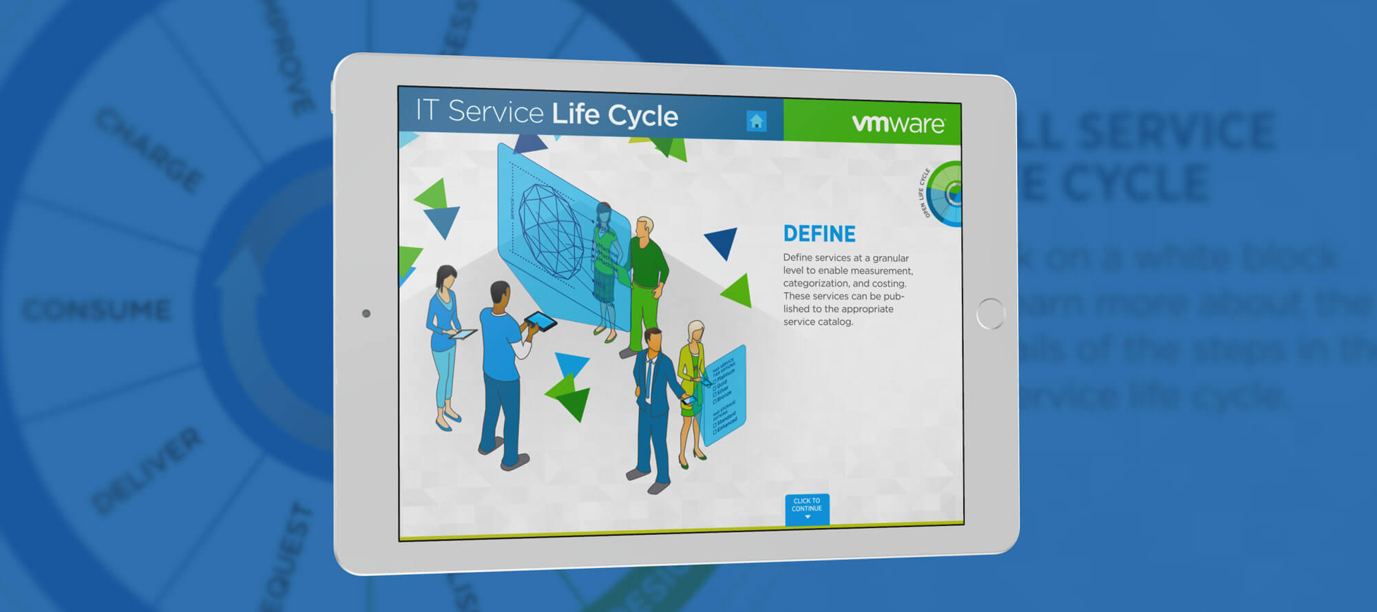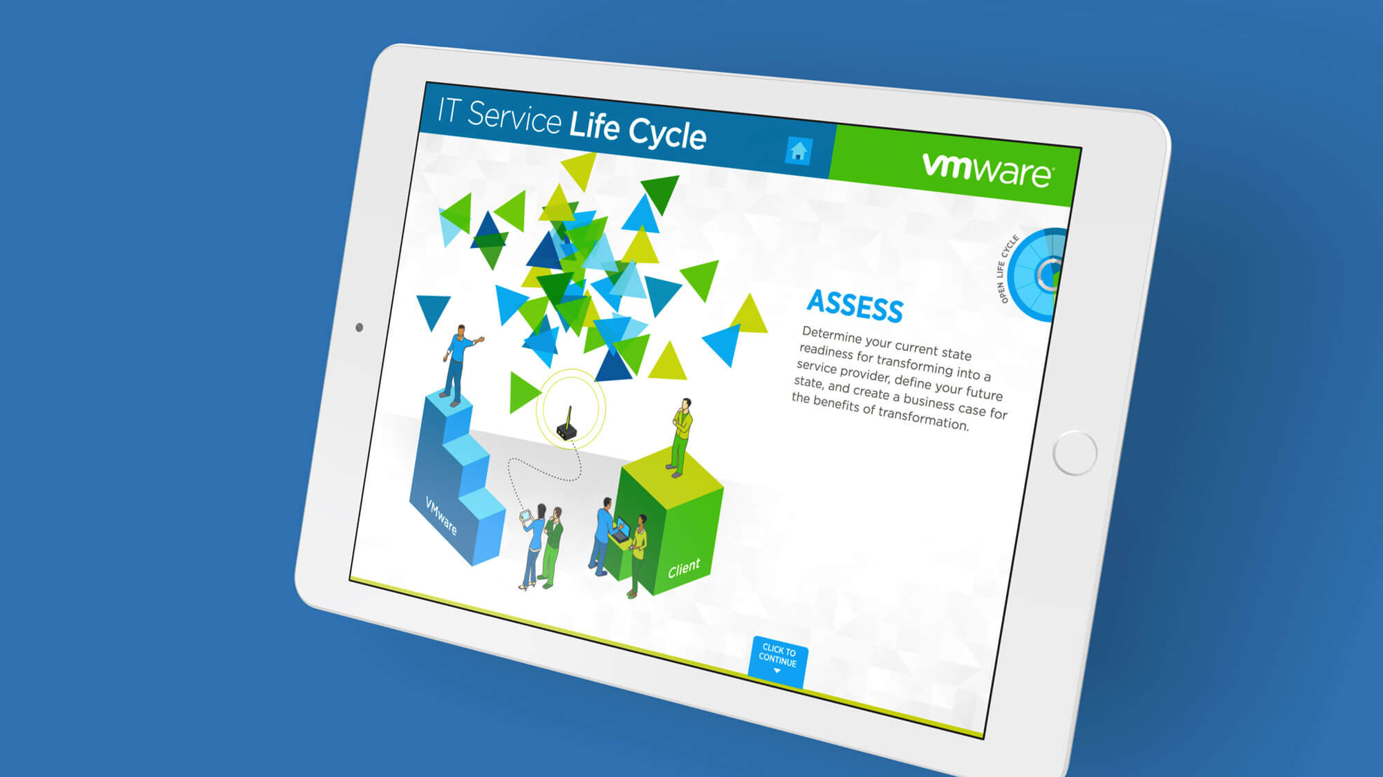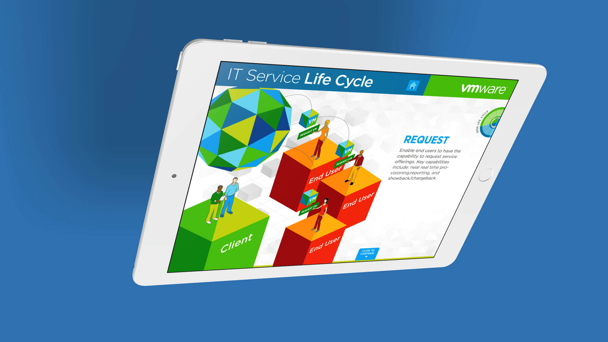 A company's IT can change all the time. So VMware developed a series of processes to help clients manage the dynamics of business IT. This app was developed for the VMware sales force to show the process of IT development and how it can be streamlined.